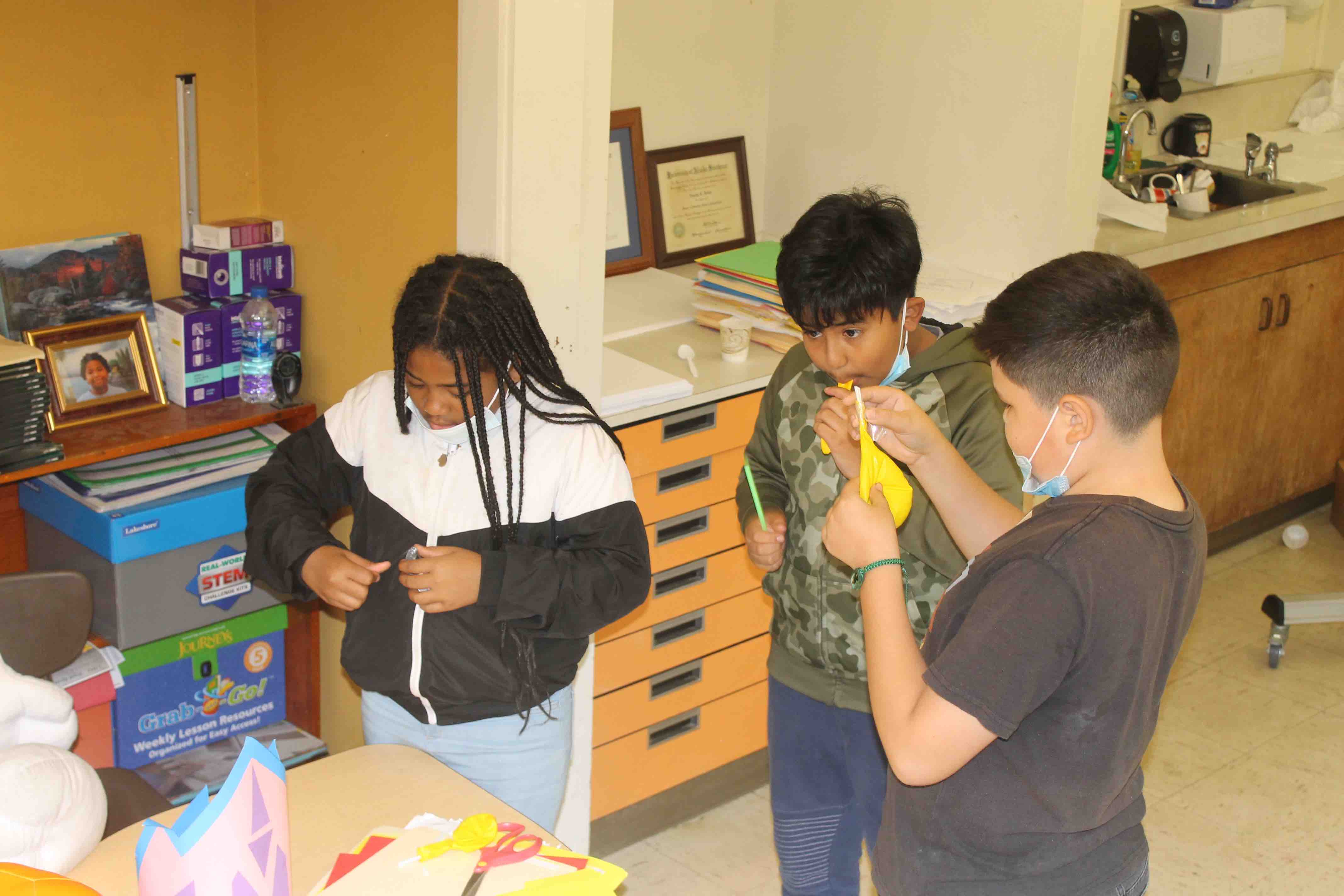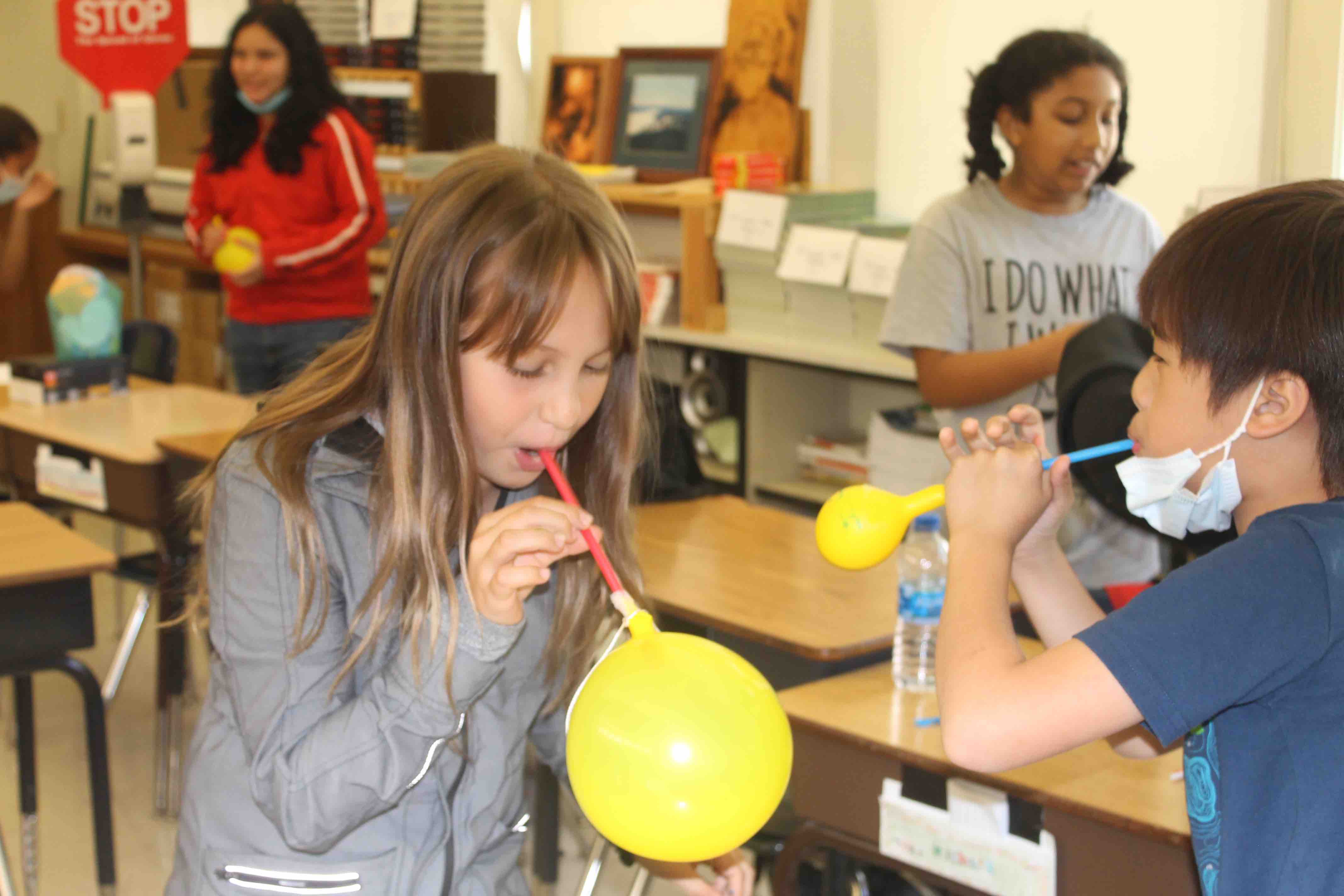 The students were given the initial task, the challenge, to see if they could fly the Balloon fully from one side of the classroom to the opposite wall.